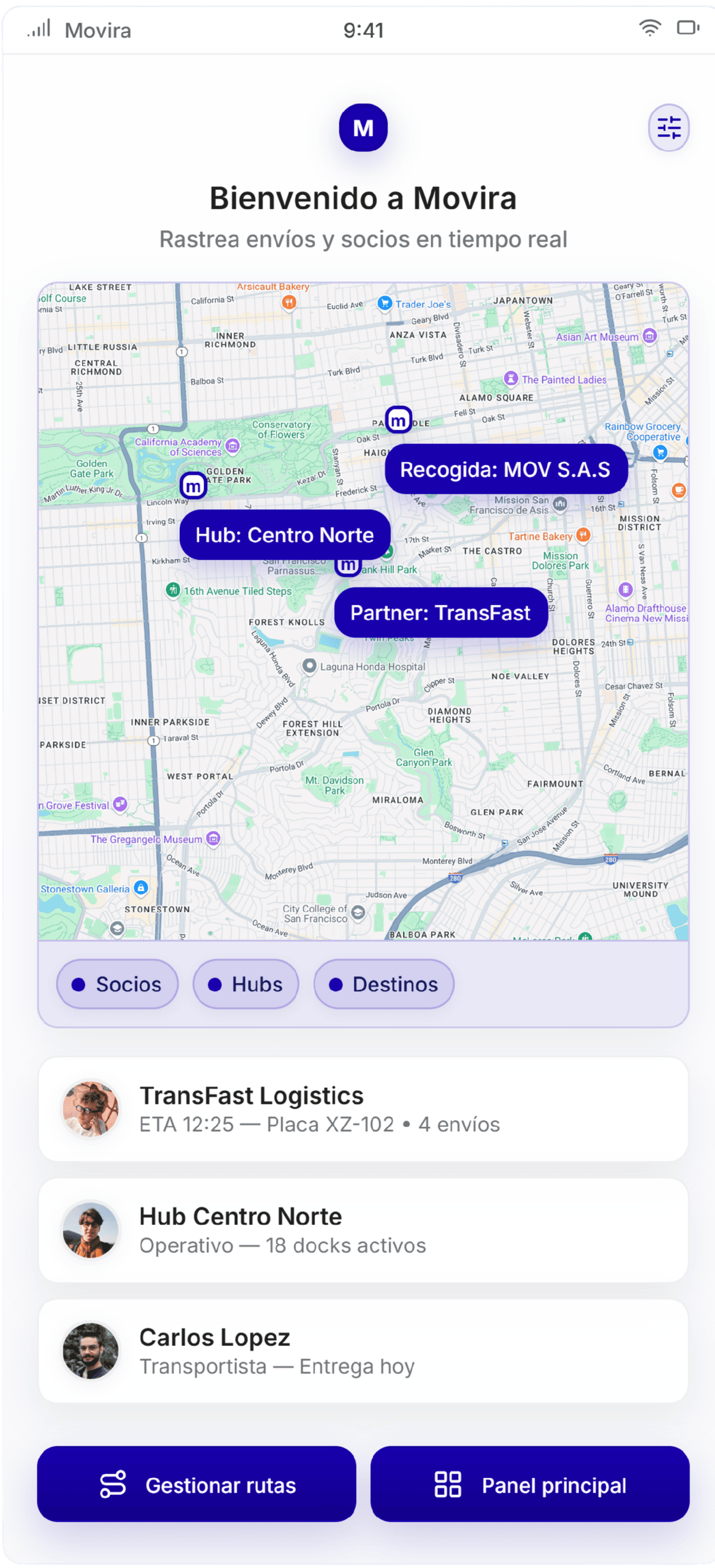 Movira es infraestructura digital para la gestión de transporte en Colombia. Centralizamos publicación de cargas, asignación inteligente, trazabilidad en tiempo real y validación digital de entregas.